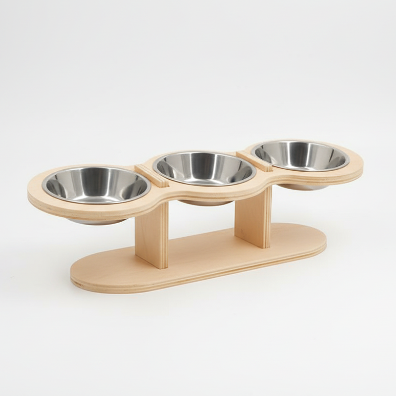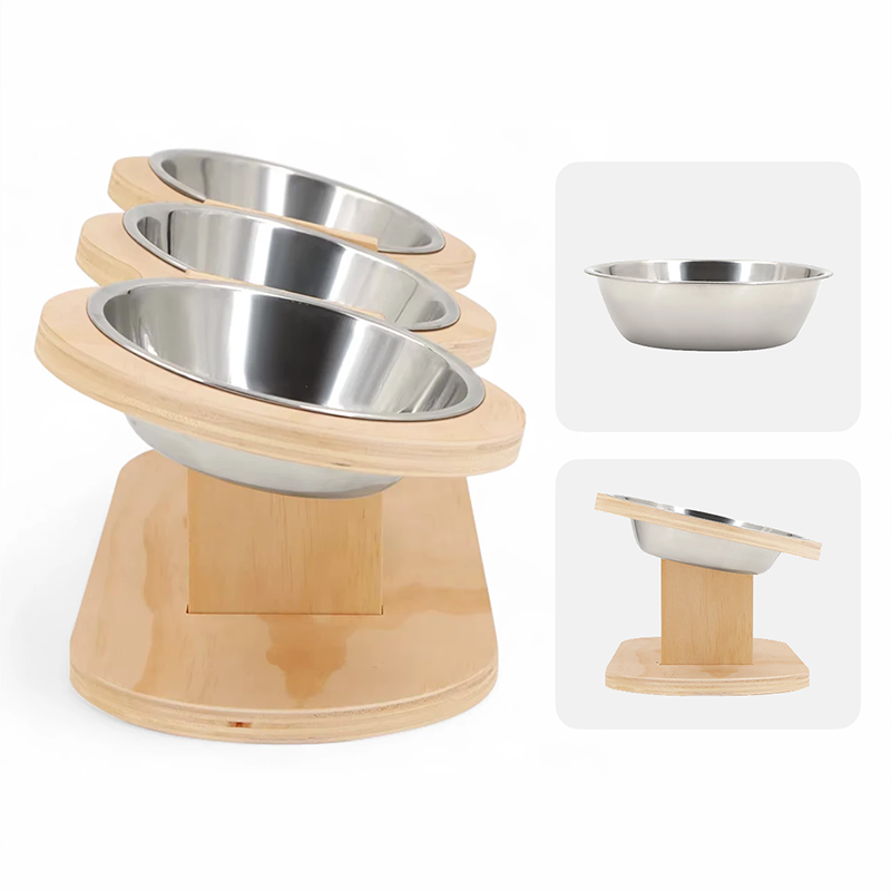 3pcs Stainless Steel Tilted Cat Bowl with Wooden Stand