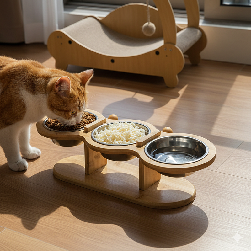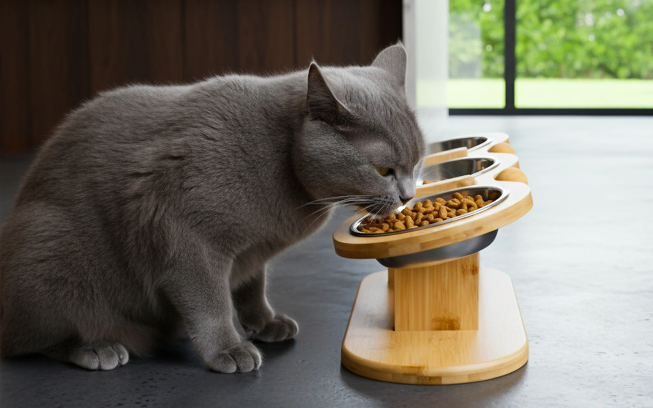 The wooden stand makes feeding look fancy. It’s helped our older cat eat slower with better digestion. Kitchen stays cleaner now.