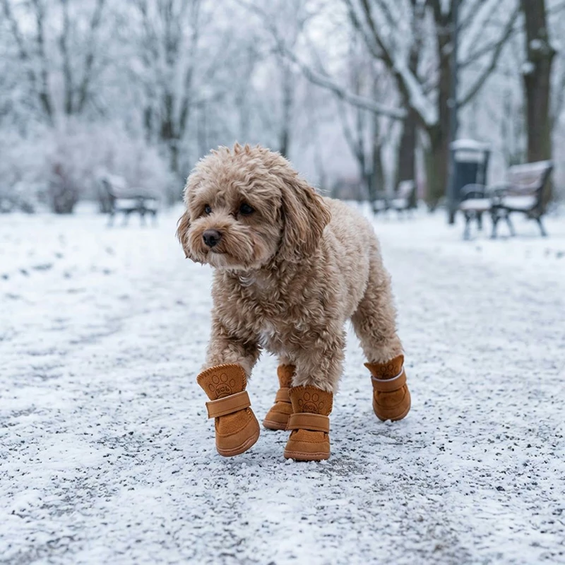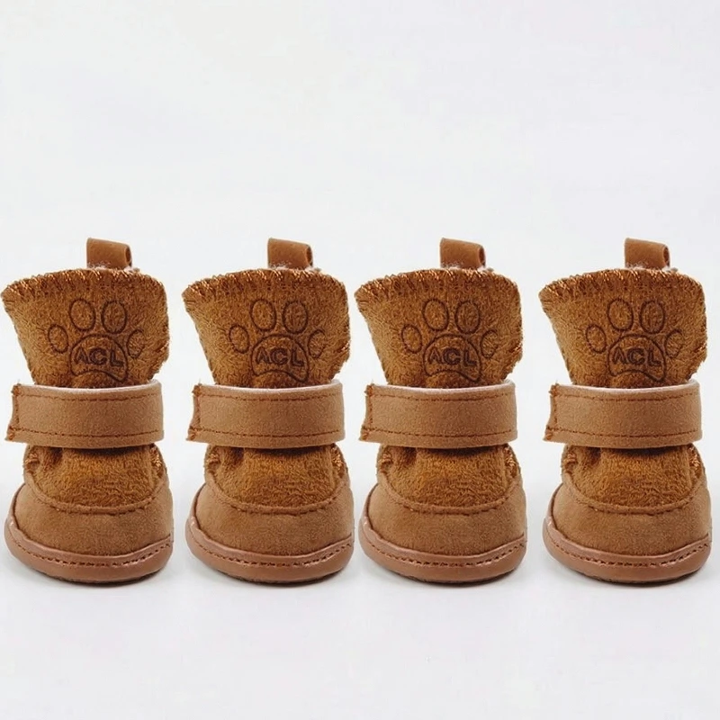 4pcs Dog Snow Boots Warm Anti-Slip Winter Shoes