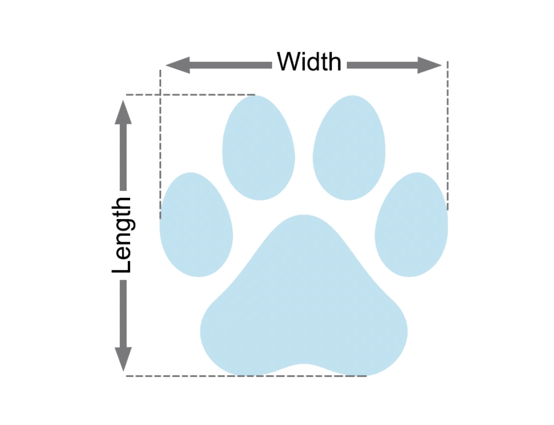 - 2. Mark the widest and longest parts of the paw, then use a ruler to measure these distances.