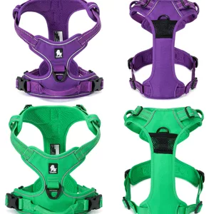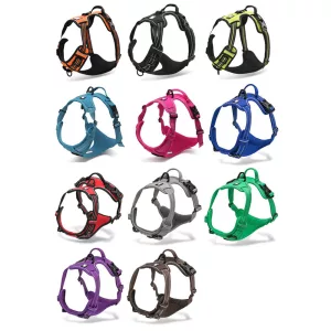 This harness features double stitching that allows for excellent tensile strength and increased load capacity. The reflective stitching throughout the harness makes it perfect for nighttime strolls. 3M reflective material keeps your dog visible when it’s pitch dark. It also comes in various colors that help the harness stand out at night. The outer layer is scratch-resistant, so it can last longer no matter how much damage your dog tries to do to it. The harness boasts an ergonomic shape that makes putting it on and off the dog easier than ever. The adjustable straps with quick-release buckles, 11 vibrant color options, and a wide variety of size choices make for a completely customizable experience.