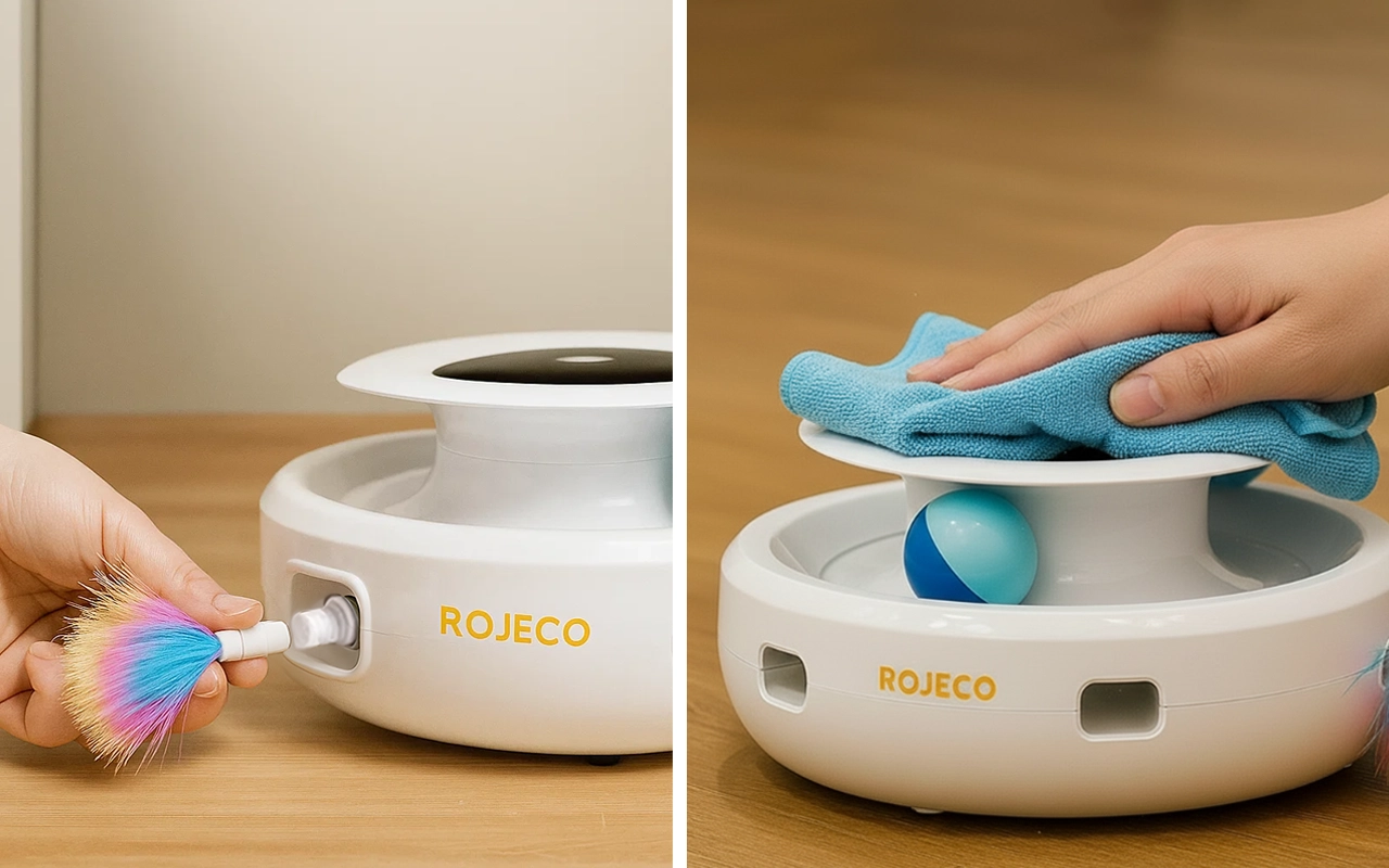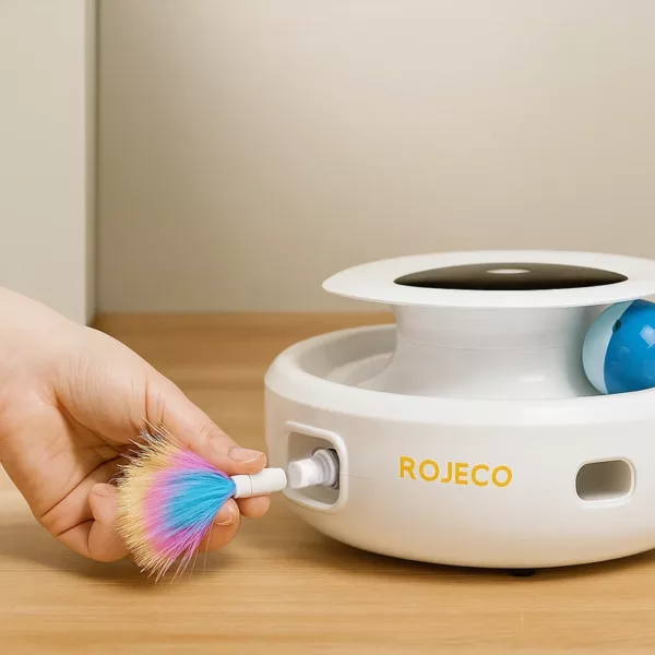 I set it to random mode so my cat doesn’t get bored. It makes playtime way more exciting for her. Easy to clean as well.