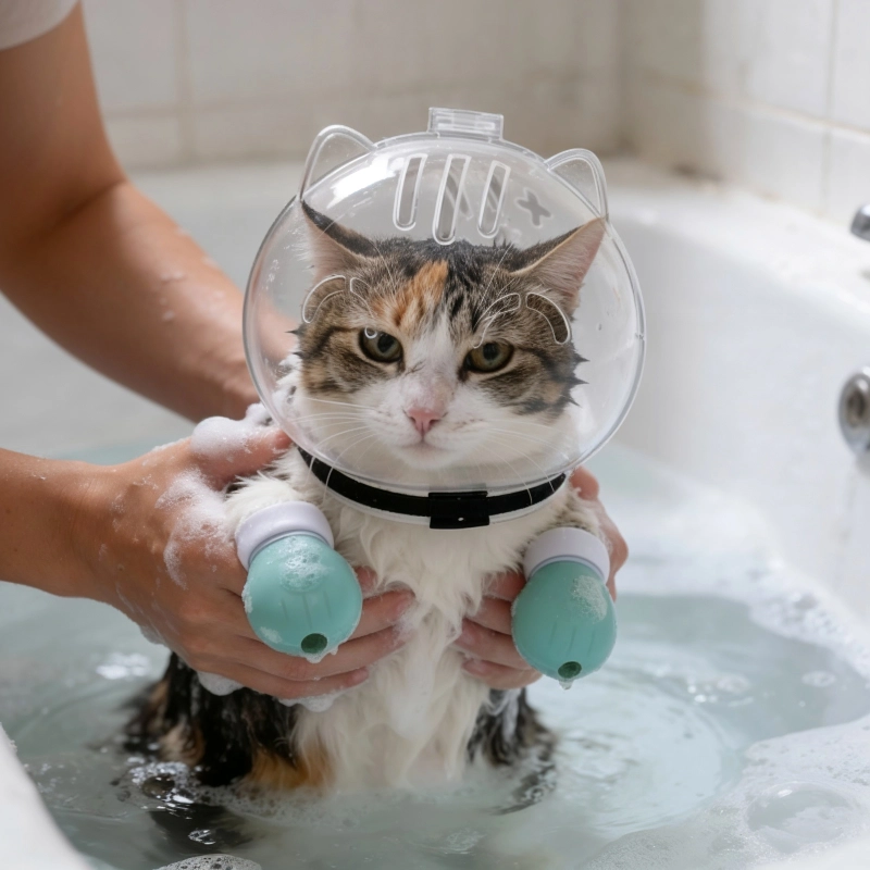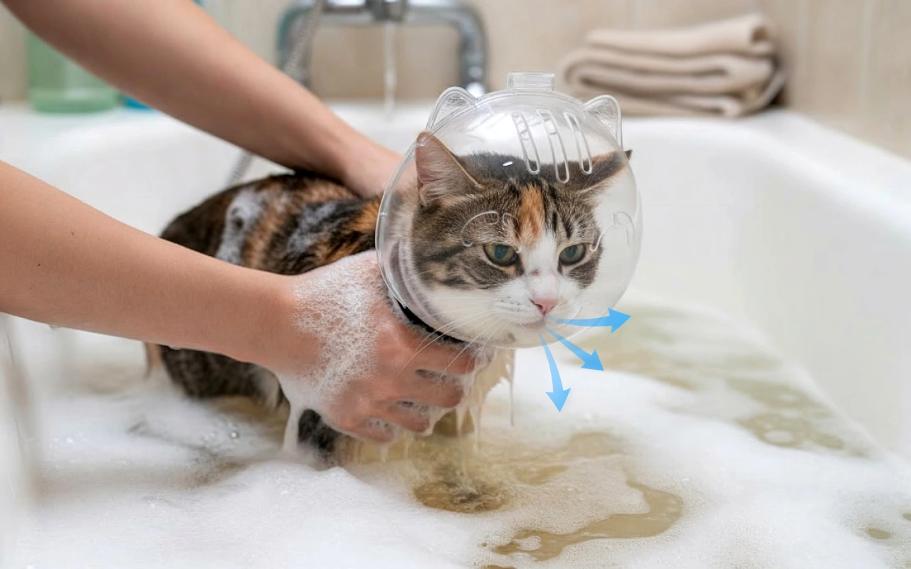 My cat absolutely hates water, but with this hood, no more angry biting or scratching. I can finally wash her safely and she doesn’t seem upset.