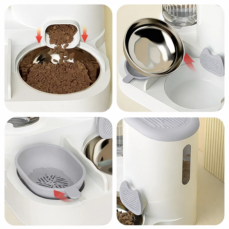 The feeder keeps food dry, stops ants from crawling in, and my old cat drinks more water now. Lasts for days before I need to refill.