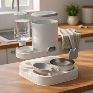 Great for my lazy mornings! I don’t worry about my pets running out of water or food. It’s easy to clean and looks nice in the kitchen.