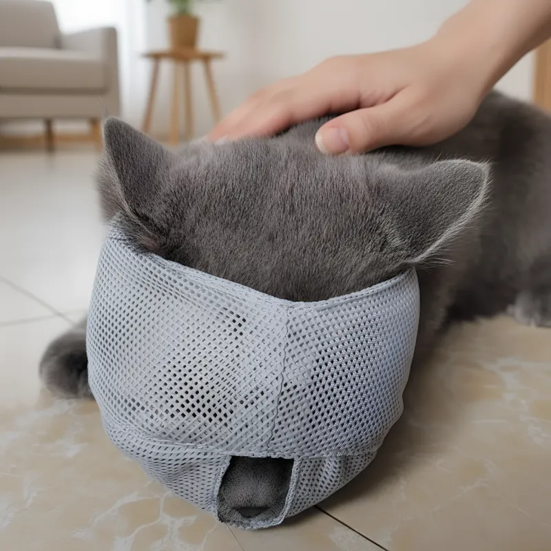 I never thought my grumpy cat would sit so still during nail trims! The mesh muzzle fits so well and keeps her calm the whole time.