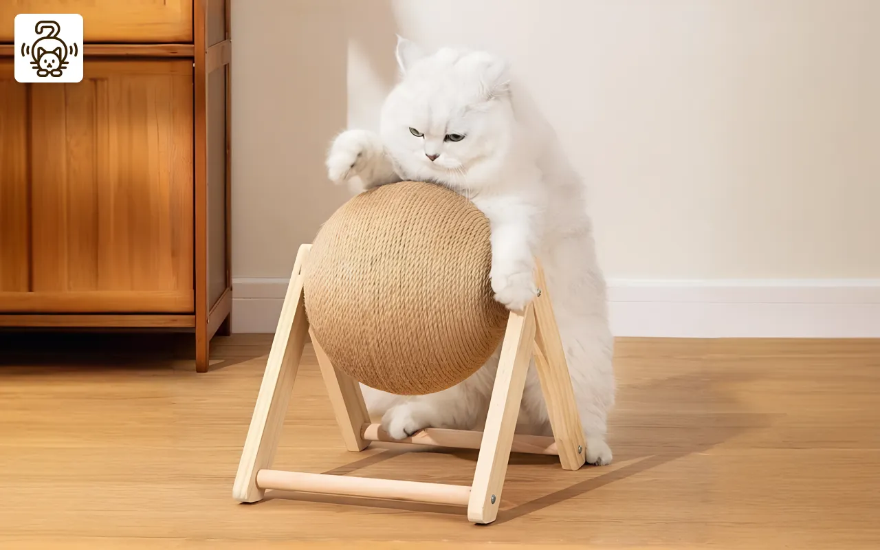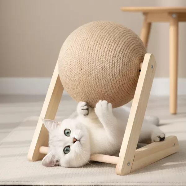 My kitten loves climbing up and around this big sisal ball. She stays busy for hours. Even my friends asked where I got it because it looks neat.