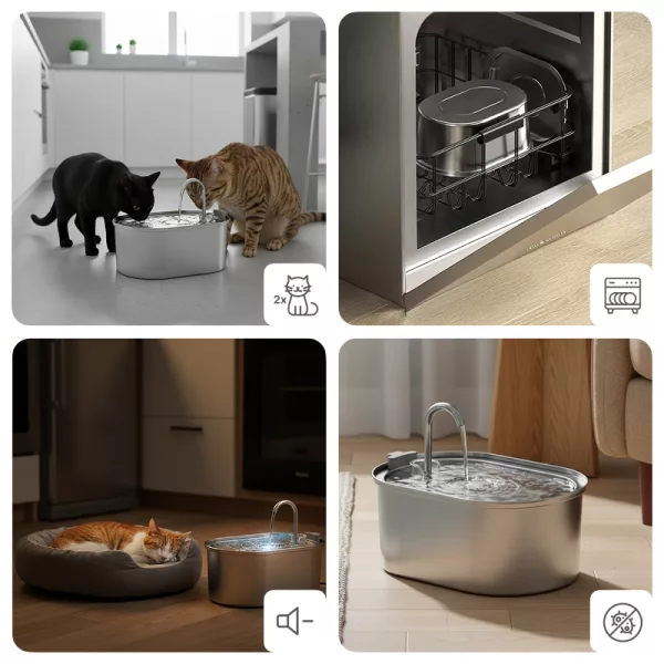 No more gross smells or dirty water for my cats! They love drinking from the tap part, and I barely notice it’s there because it’s so quiet.