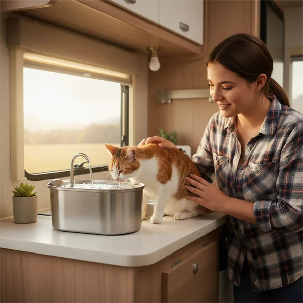 I really like how quick it is to wash the fountain. My shy cat uses it a lot and seems less stressed now. The stainless steel looks nice in my kitchen.