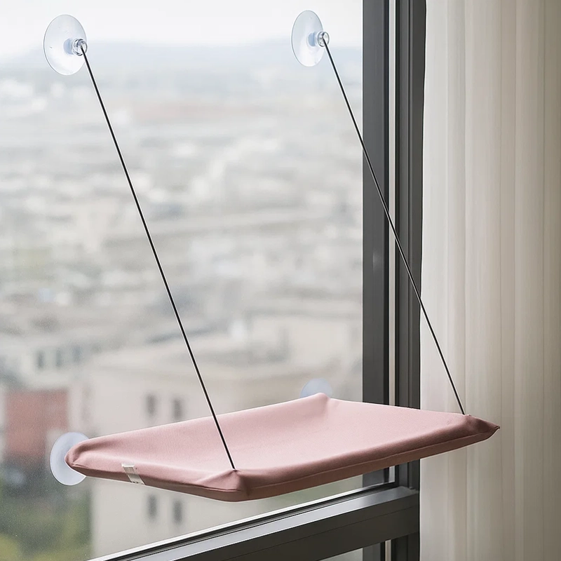 Cool perch for my adventurous kitty. The suction cups hold on super strong. I was worried he’d knock it down but it stays put.