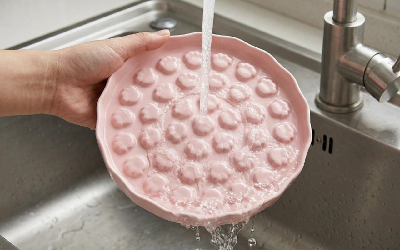 Washing only needs a quick rinse in warm water. No hidden bits or stains get left behind on this design.