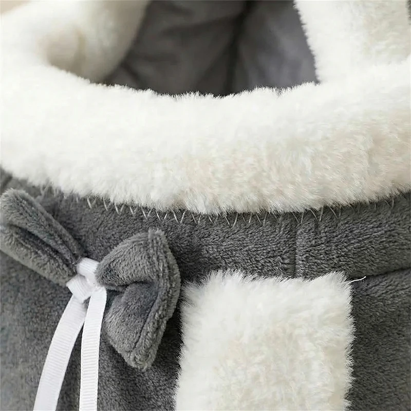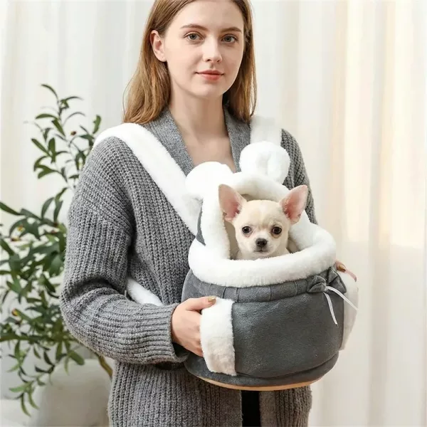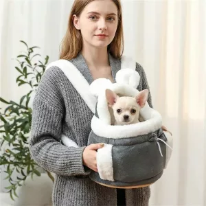 My wife uses this carrier for our tiny dog on winter walks. The plush inside keeps him toasty, and the drawstring makes me feel he’s safe.