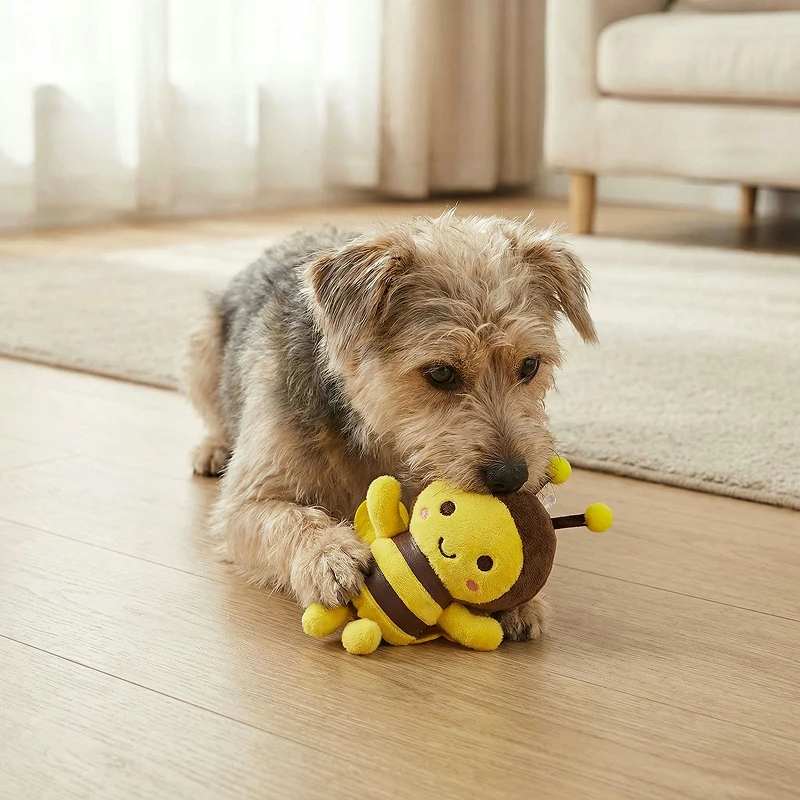 My puppy can’t get enough of her bee toy! It’s super soft and holds up to lots of chewing. Great for indoor playtime on rainy days.