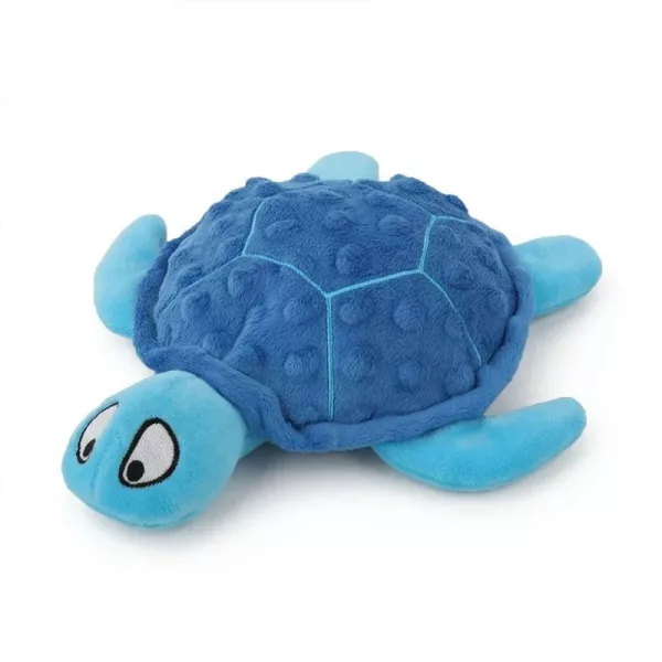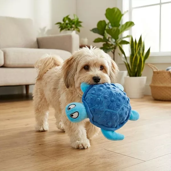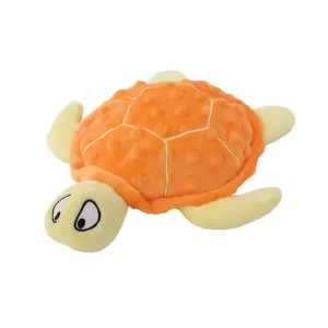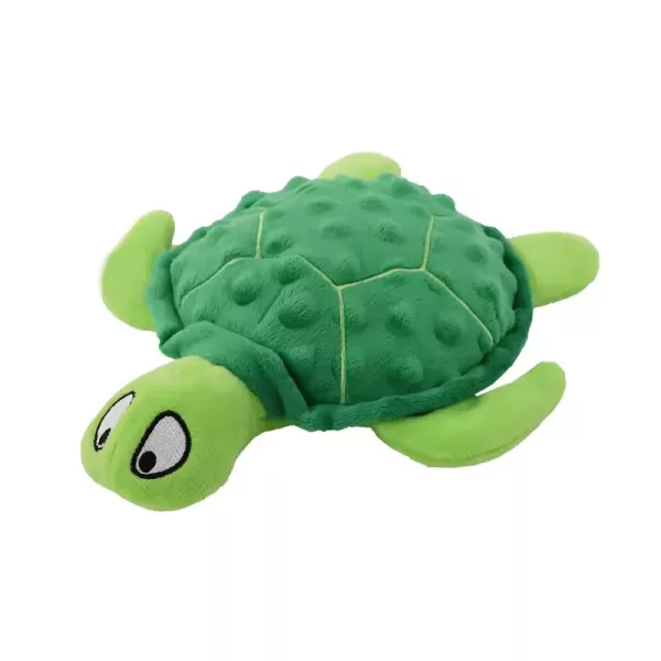 Got the turtle for my anxious rescue dog. The squeak and rustling noise distract her during storms, and the plush body is easy on her mouth.