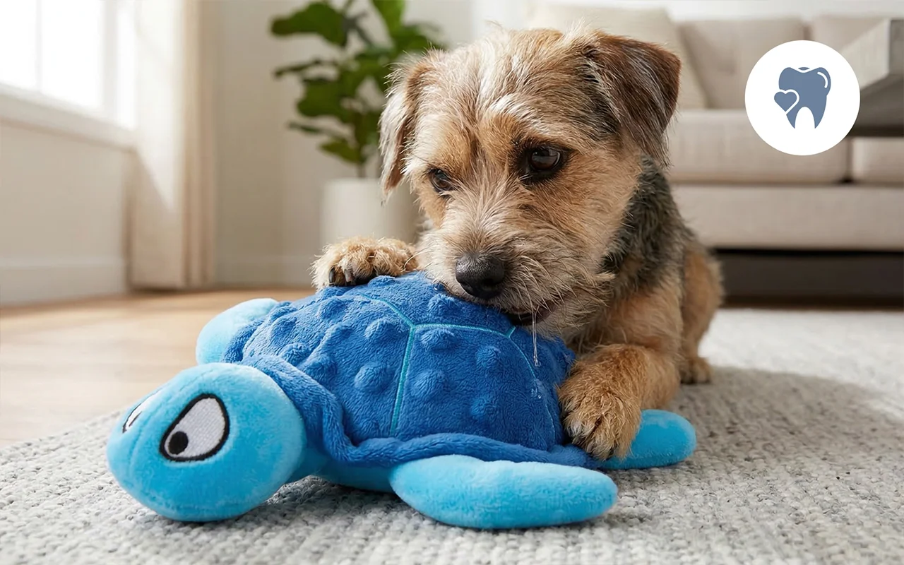 I use this little turtle during our training breaks. My pup loves the gentle squeak, and the fabric feels safe on her tiny puppy teeth.