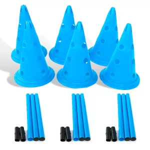 The set includes all the essentials: cones, poles, and hurdles. Everything you need to create a stimulating agility course is included.