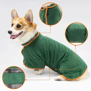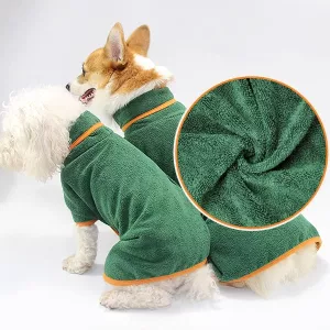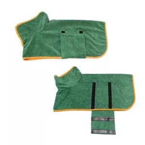 I love this microfiber robe for my dog. It’s so absorbent and helps keep the mess to a minimum after baths. The size is perfect and the design makes it easy to put on. My dog seems to enjoy the coziness it provides.