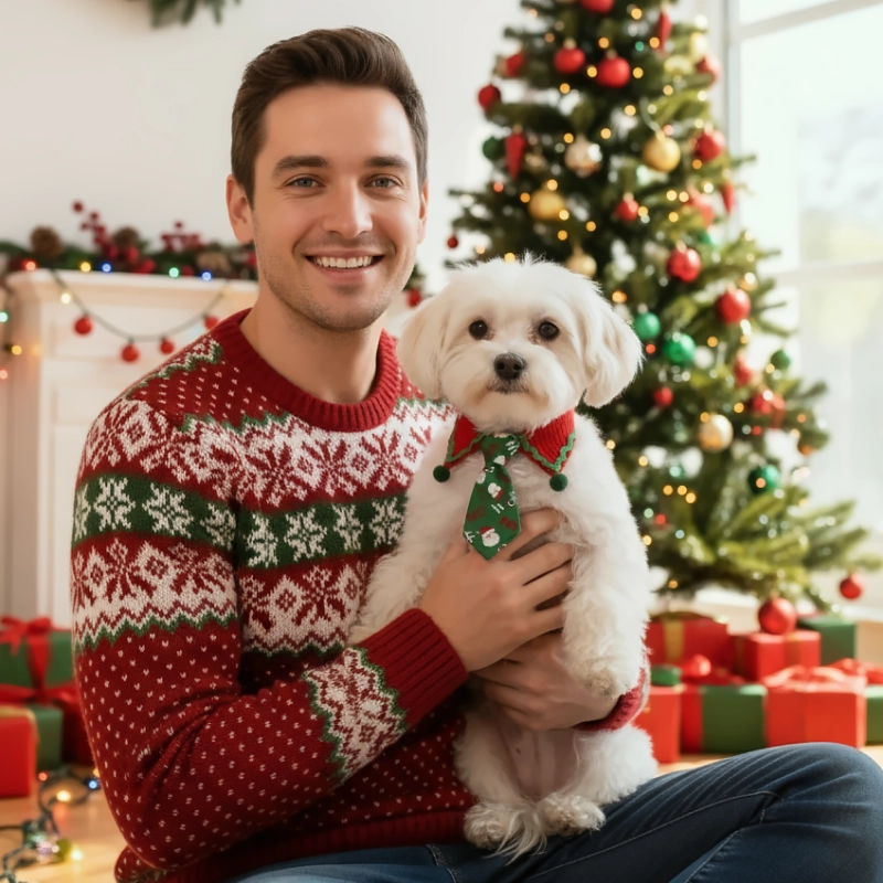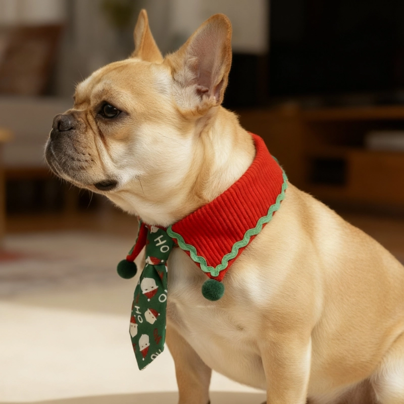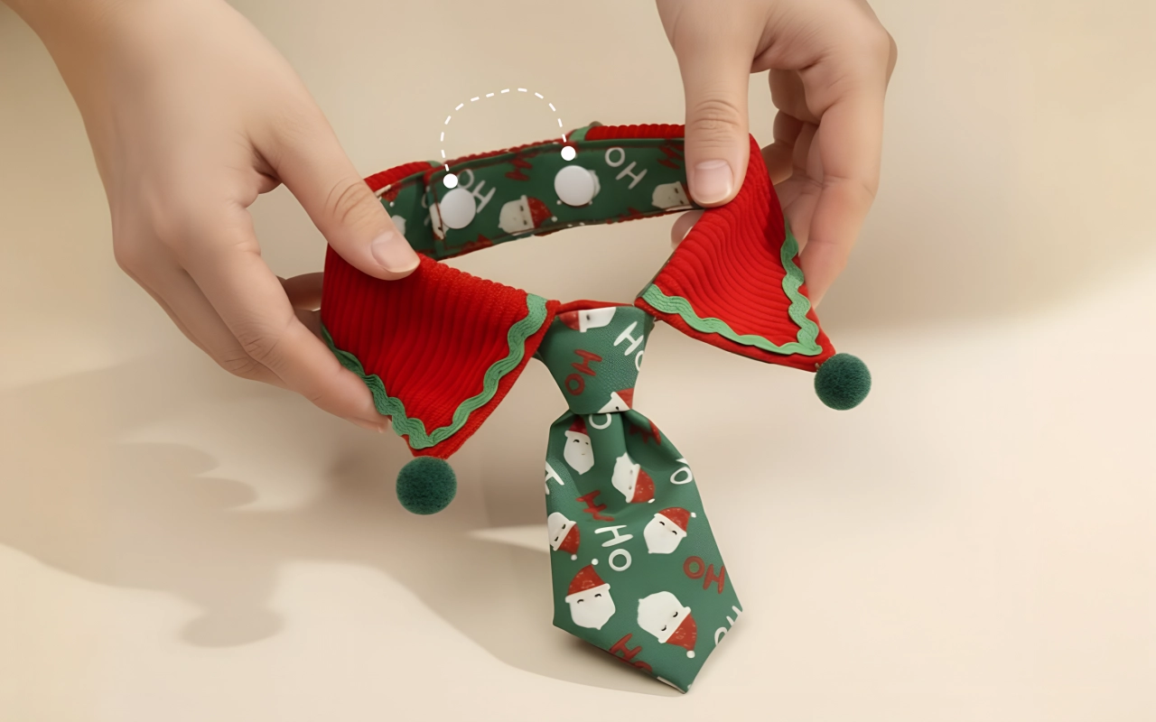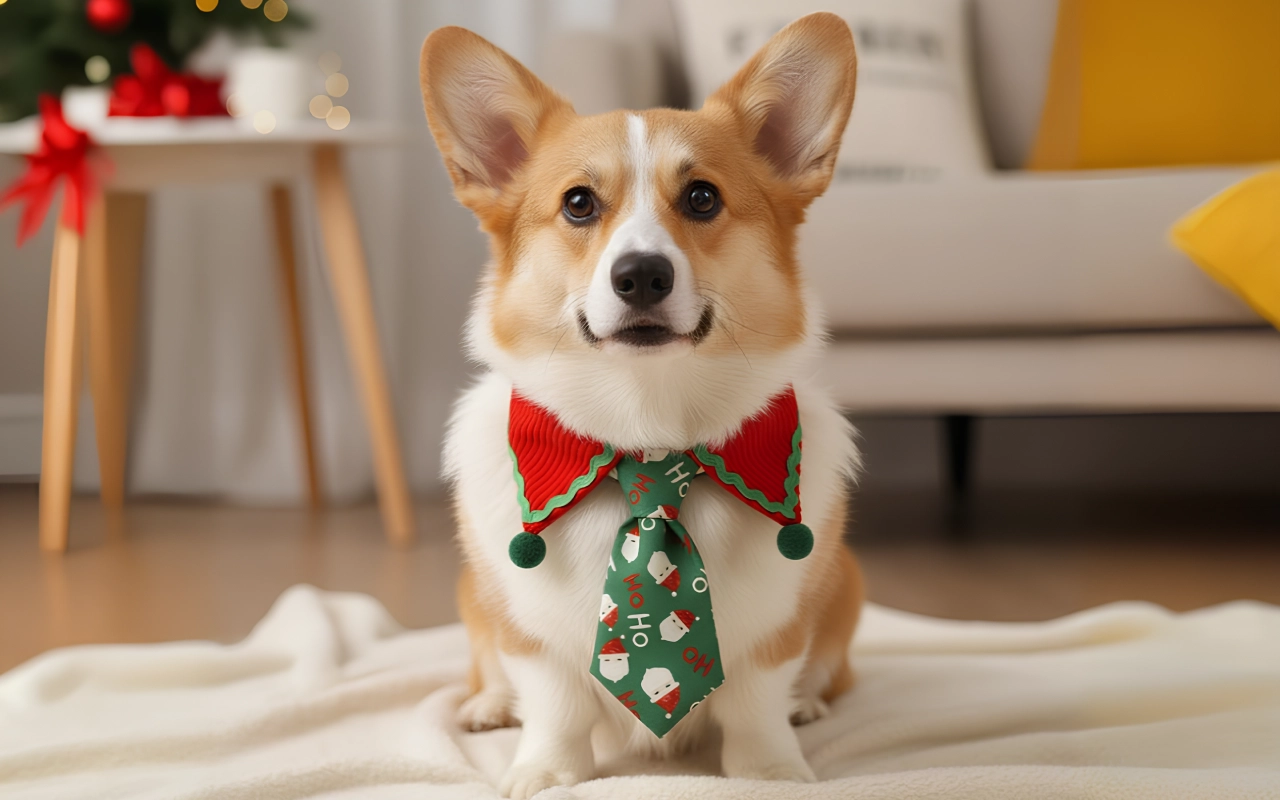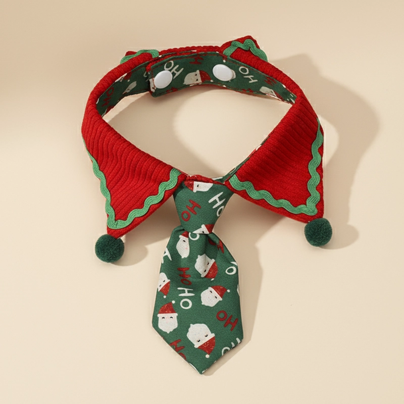 My dog looked adorable in this festive neckwear! Super easy to snap on, fit was perfect, and the soft material didn’t bother him at all. We got so many compliments on our Christmas photos! I’ll definitely use it again for New Year’s; it still looks brand new.