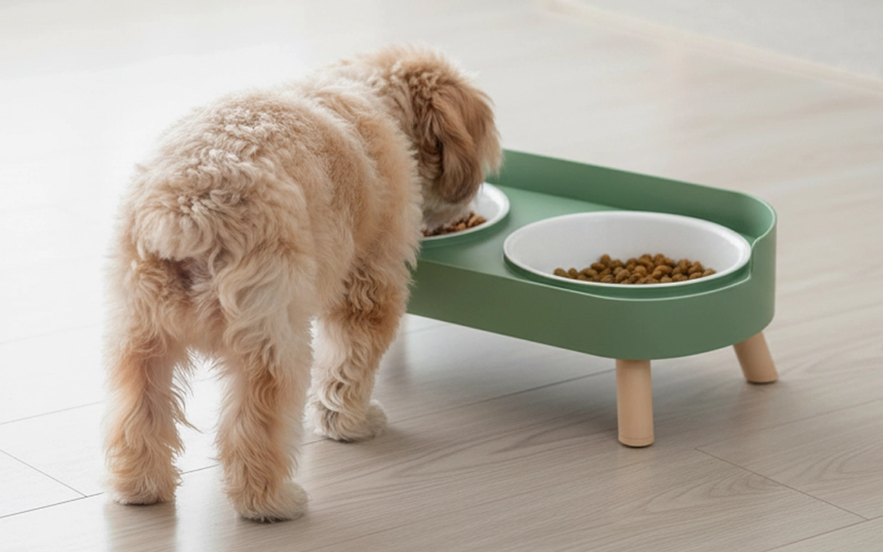 Primdog bowl stand supports good posture for pets eating. Meals are comfortable and easy for every size friend.