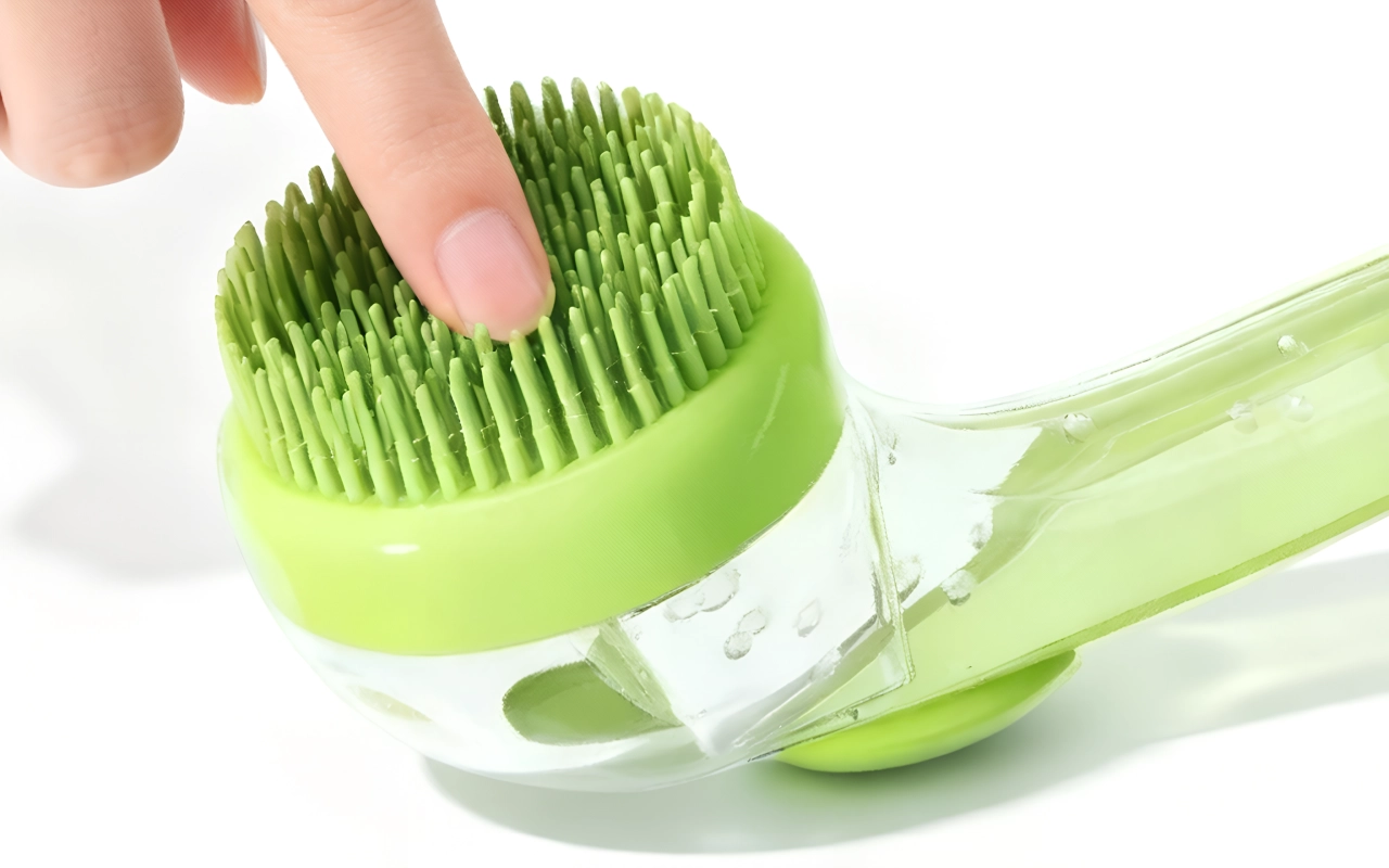 Dog Silicone Bath Brush Shampoo Dispenser with Long Handle