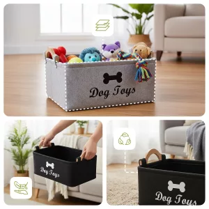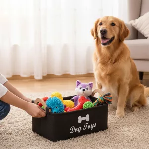 This simple box changed our cleanup routine. We throw all the rope toys and chews inside every night—super quick. My dog even drags it himself sometimes!