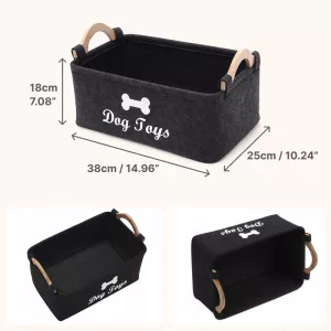 My dog digs around for her toys and the box makes it easy for her. Everything is in one spot and I love the soft feel of the felt.