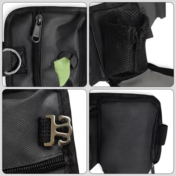 Great for hiking and long walks. Bag is really light and the compartments are perfect for different dog snacks and a water pouch.