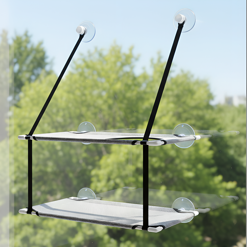Let every feline enjoy fresh air and lovely views daily. Primdog Double Deck Cat Hammock keeps pets safe and very happy indoors. Strong suction cups hold it firmly on any window surface with ease. Lightweight parts enable quick assembly without the need for any tools.
