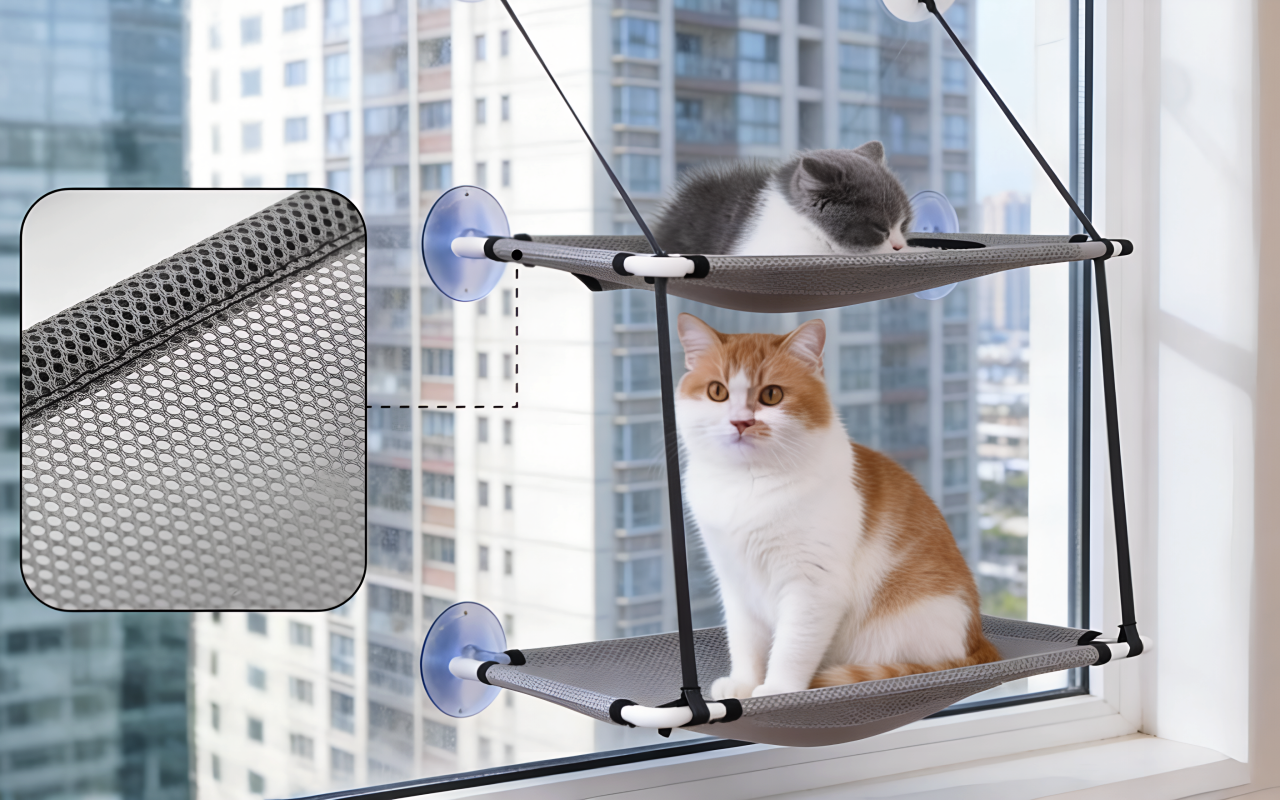 Holds up to 25kg using secure suction cups and durable fabric. Even large or playful cats stay supported without worry.