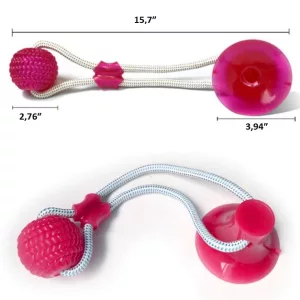 The concept of the interactive suction cup toy for dogs is simple: a strong suction cup anchors the toy to the floor, wall or window and other smooth surfaces with strong suction. The attached rope and a chew toy challenges your dog to pull, bite, and play to his heart’s content with the ball. The toy is available in 3 bright colors: turquoise, red and blue. With such a catching look, it is attractive for dogs and makes them not lose it.