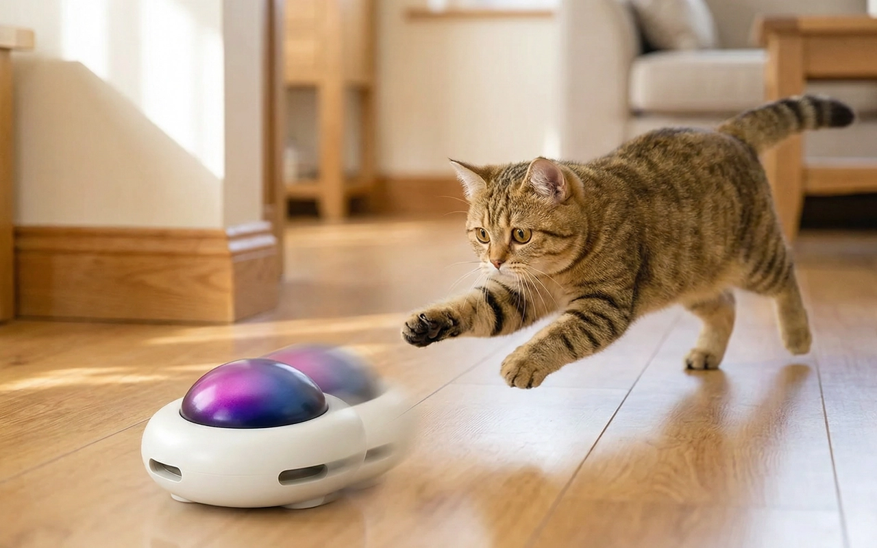 Got this for my lazy tabby and now he chases it around for hours. The way it avoids furniture is super impressive!