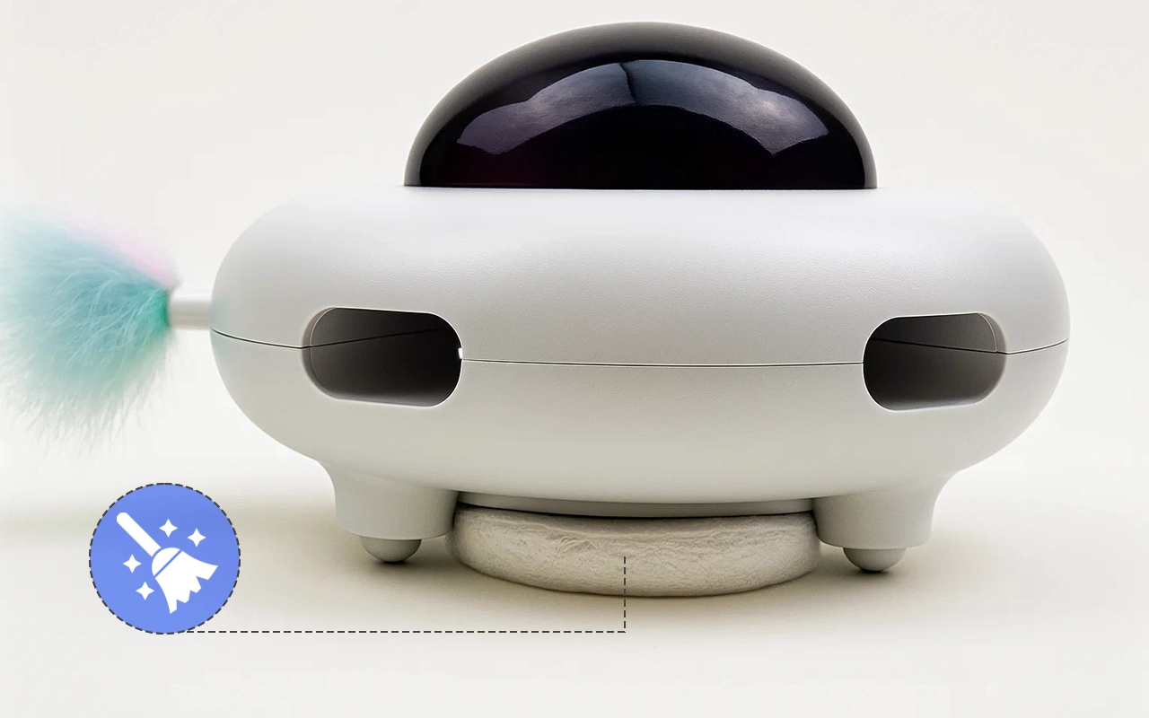 Integrated felt collects loose hair while it rolls around. Floors stay tidier while pets burn energy chasing feathers.