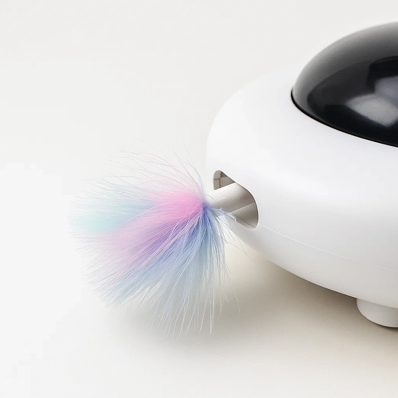 Integrated felt collects loose hair while it rolls around. Floors stay tidier while pets burn energy chasing feathers.