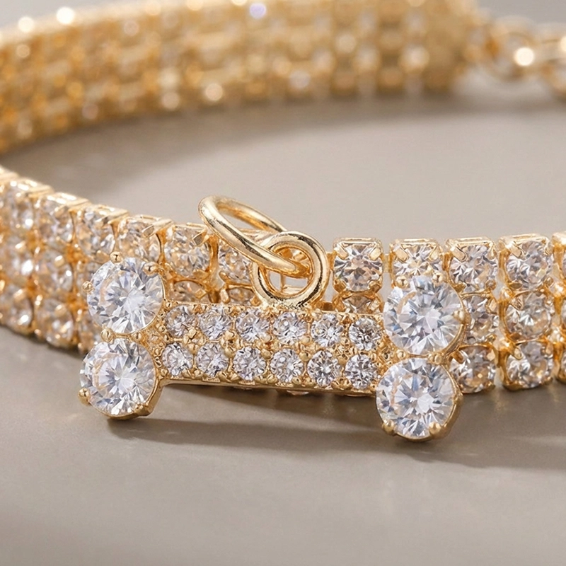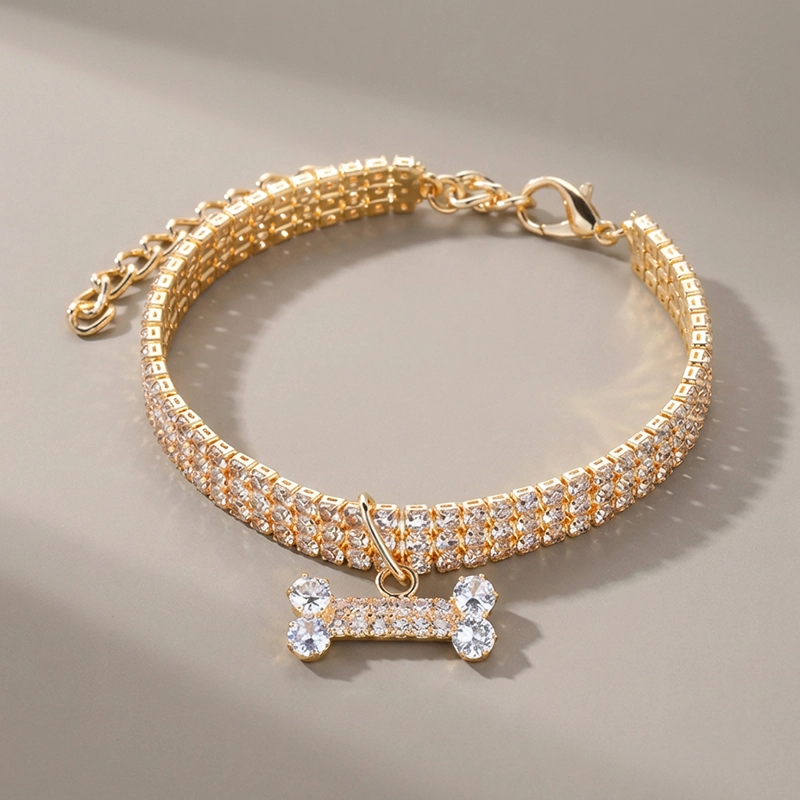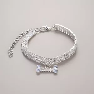 21 reviews for Lovely Dog Rhinestone Necklace Collar with Bone Pendant