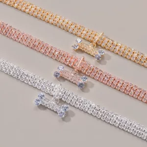 Lovely Dog Rhinestone Necklace Collar with Bone Pendant