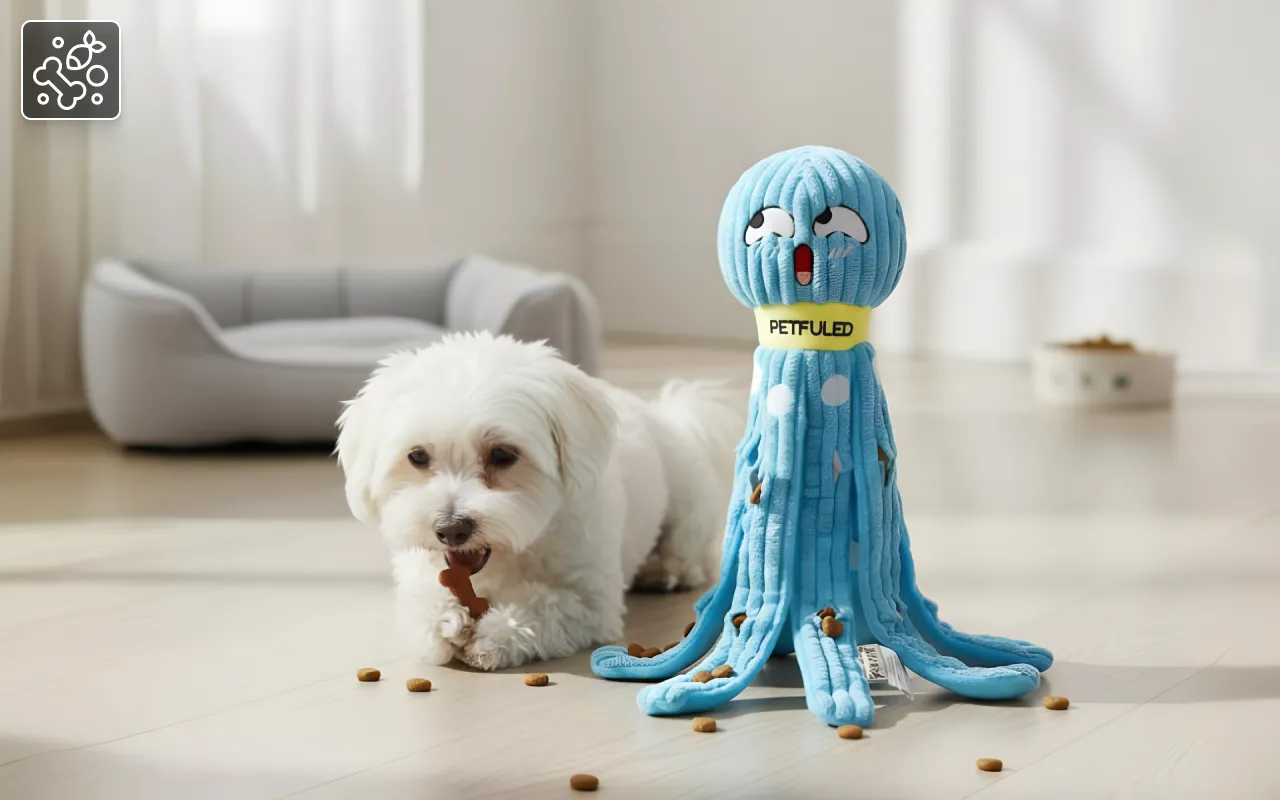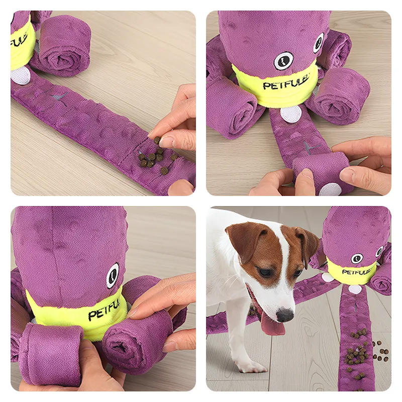 Dogs love searching for hidden snacks in every tentacle. Clever puzzles help boost intelligence and reduce destructive behaviour quickly.