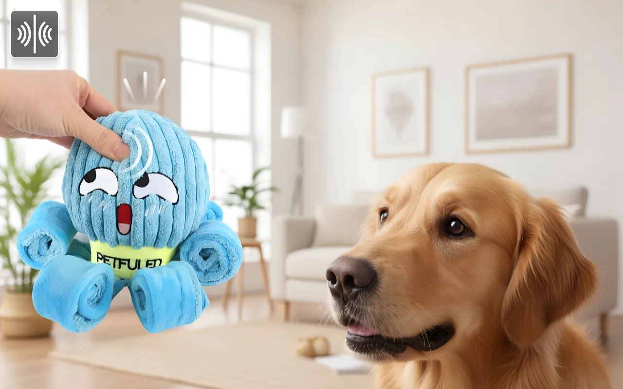 My golden retriever loves this octopus! Hiding snacks inside keeps him thinking and busy all day. The crinkle arms get him excited every time.
