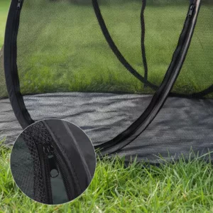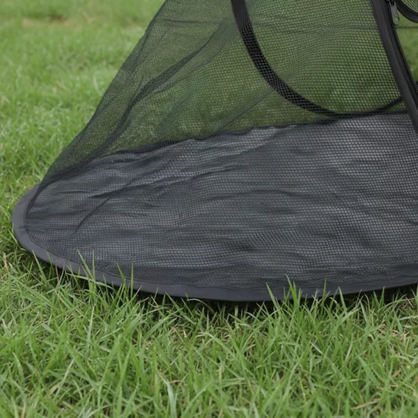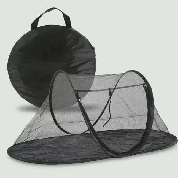 This mesh tent keeps my dog safe from mosquitoes and lets him nap outside while I garden. He seems really cozy and calm in here.