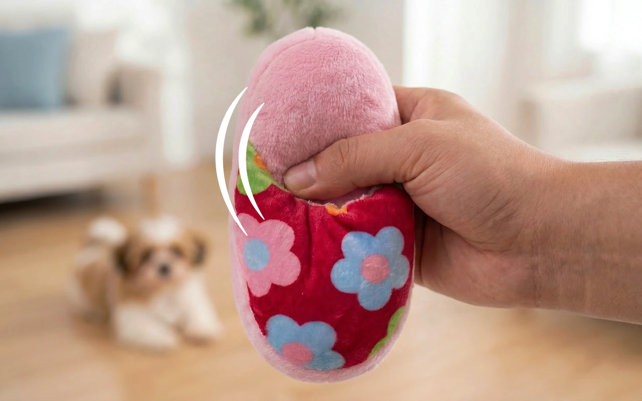 Our shy shelter dog warmed up quickly after we gave him this slipper. He chewed softly, wagged his tail, and finally curled up beside us on the sofa.
