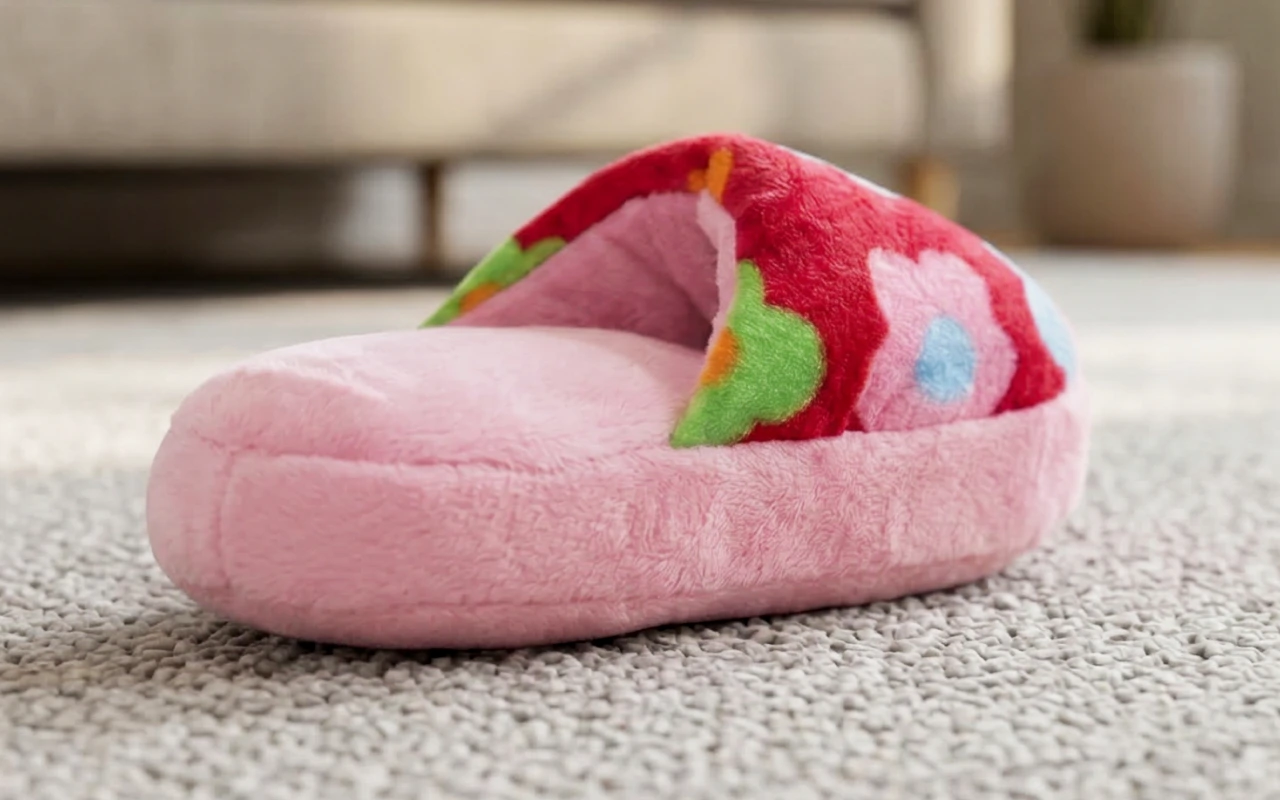 Primdog plush slipper dog toy brings hours of lively fun. Dogs or cats stay busy chewing, tossing, and cuddling this soft item. Durable material stands up to playful paws and teeth. The bright design makes playtime more exciting for furry friends.