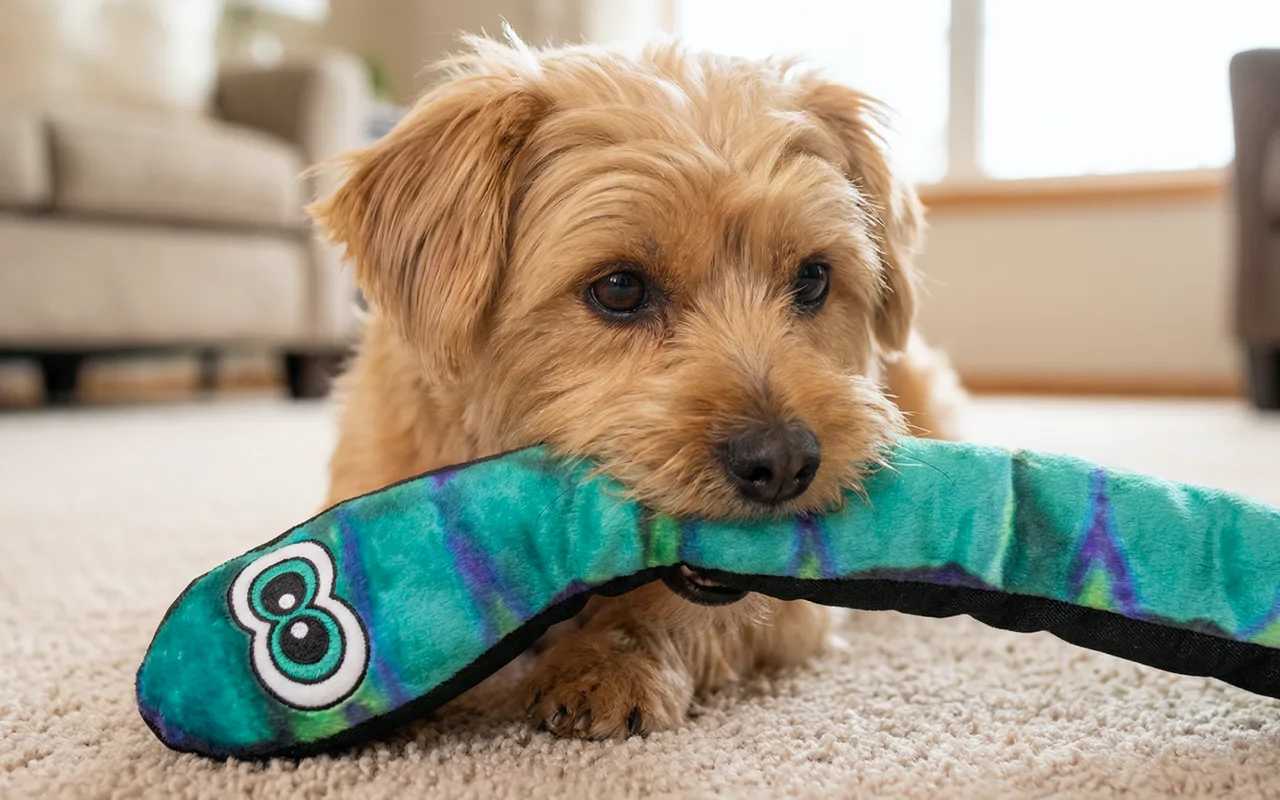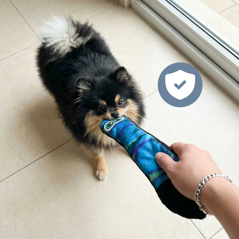 My pup gets super excited as soon as he sees the colorful snake. The material is gentle on his teeth, and he plays for hours without getting bored.