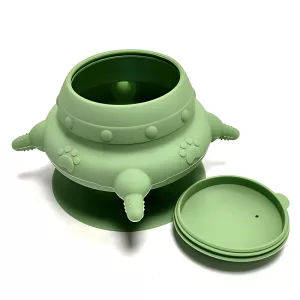 Our feeder has a suction cup at the bottom that prevents it from sliding during meals. It will stay in place no matter the impact, helping reduce the risks of spills.