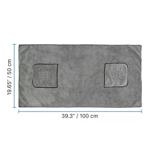 The quick-drying feature of the towel is a real benefit. It’s compact and convenient. My only complaint is that it doesn’t cover my large dog fully. I’d still recommend it for medium-sized dogs.