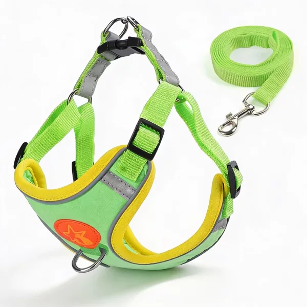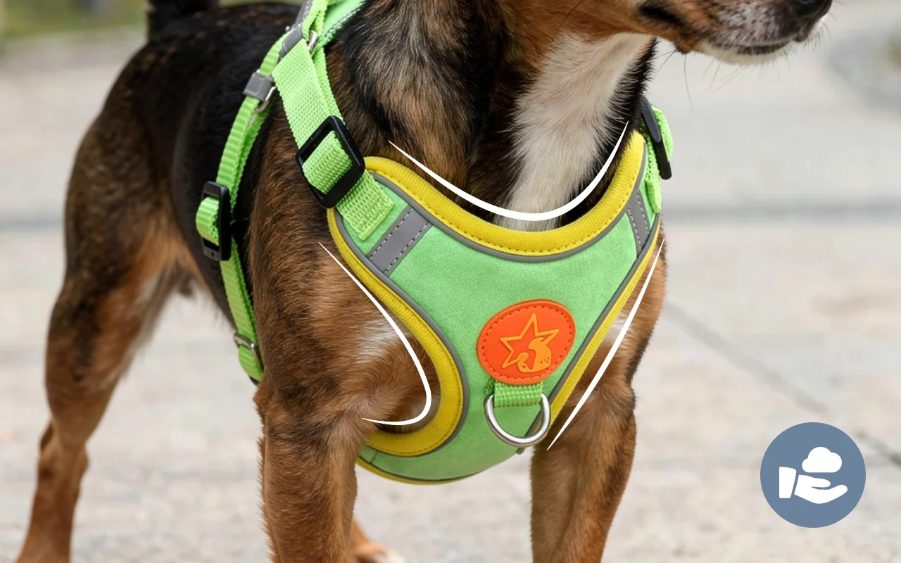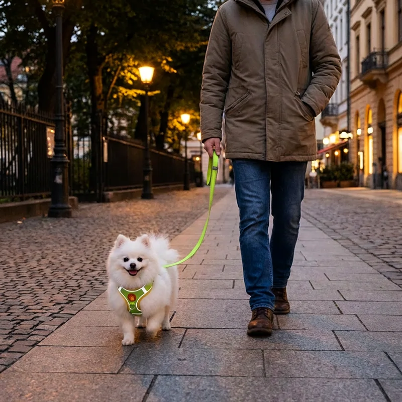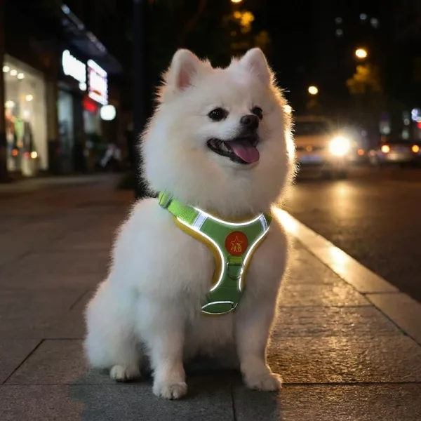 Morning walks got easier! The harness is lightweight, easy to wash, and the reflective stitch is clear as day in the evening.