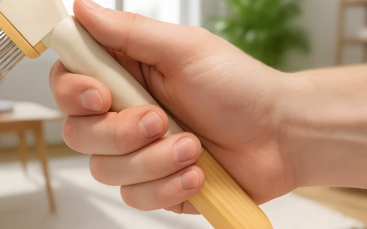So easy to use! I can hold it comfortably, and it never slips out of my hand. My cat’s fur looks extra shiny after brushing. Highly recommend.