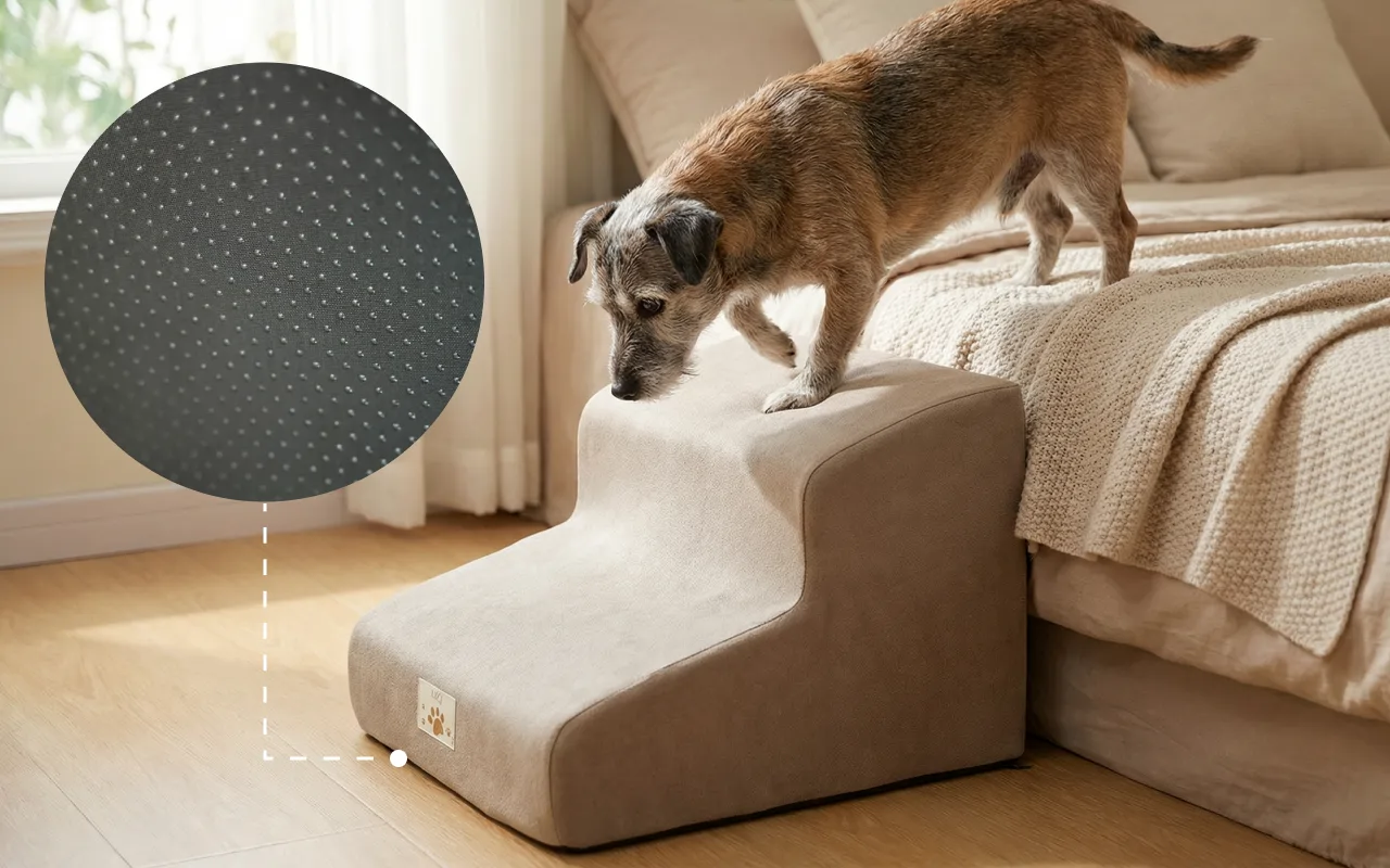 The non-slip bottom is awesome! My dog runs up safely every morning. I wish I’d gotten these steps a long time ago.