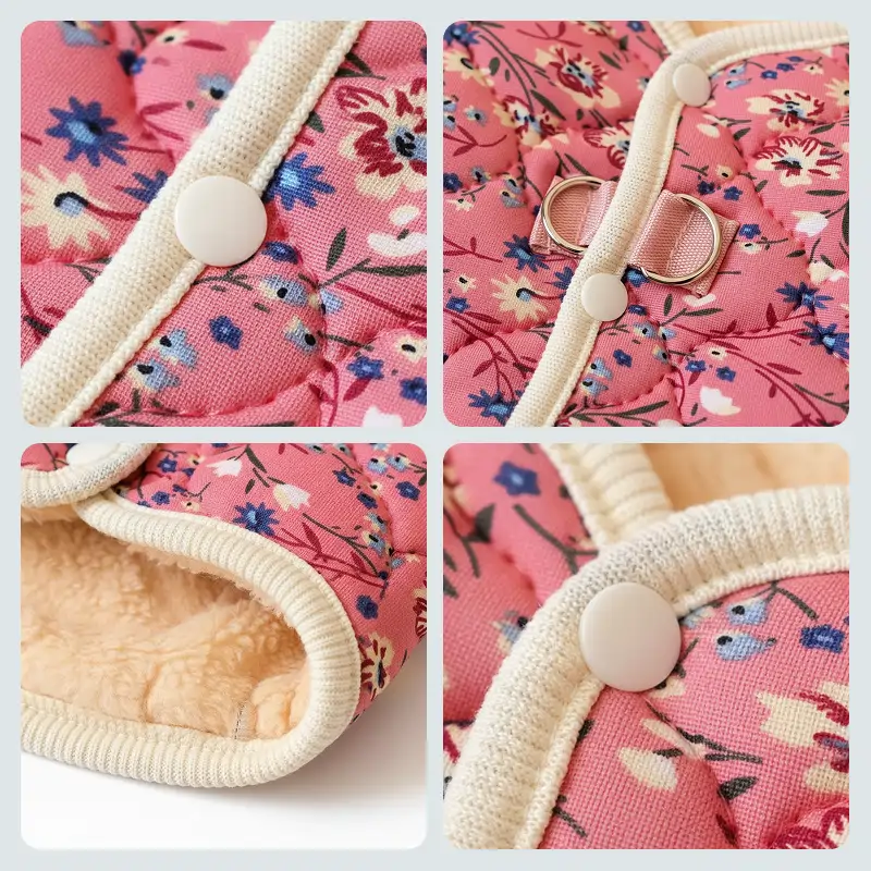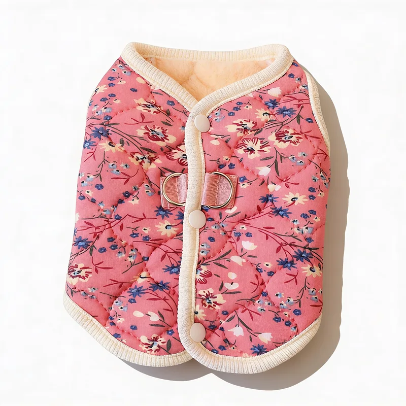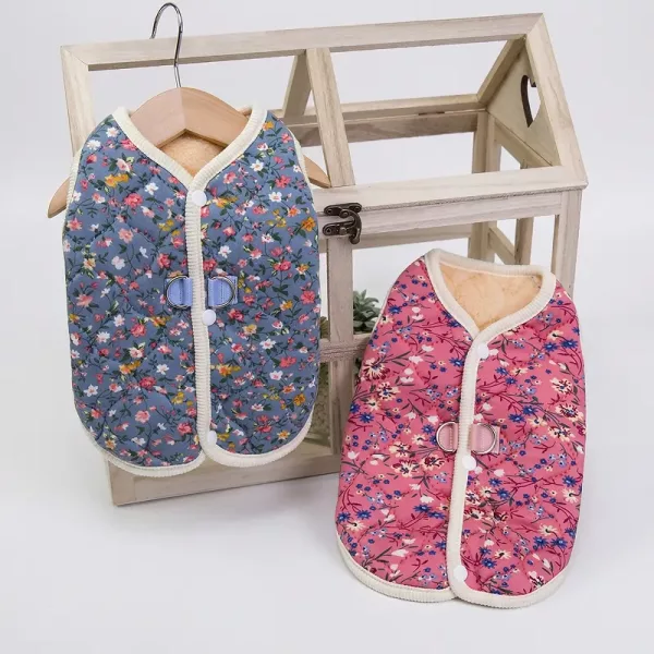 flower pet jacket, fleece dog jacket, button jacket for dogs, button up jacket