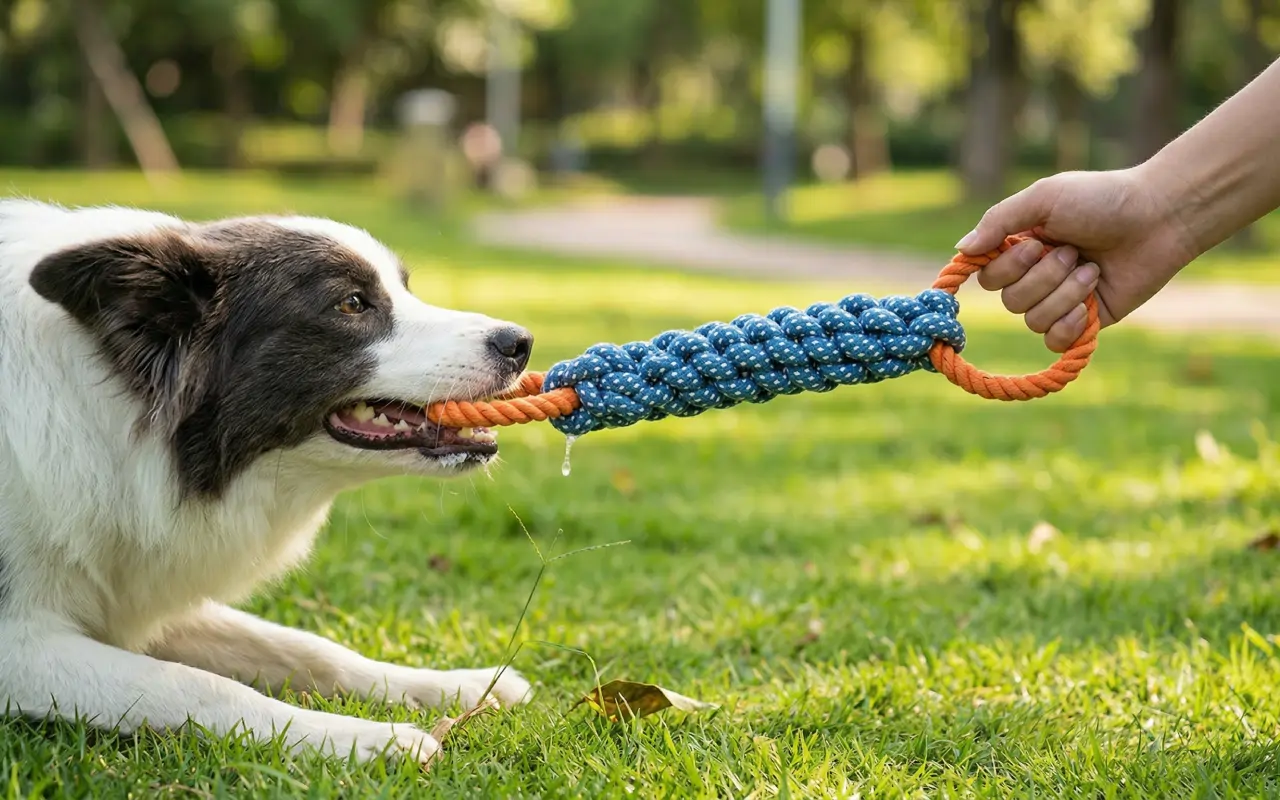 The rope is really strong and stands up to lots of pulling. My dog’s teeth look cleaner, and she seems to enjoy playing more now.