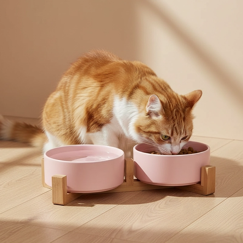The stand stops my kitten from knocking things over. Everything looks tidy, water never spills, and the bright color cheers up feeding time.