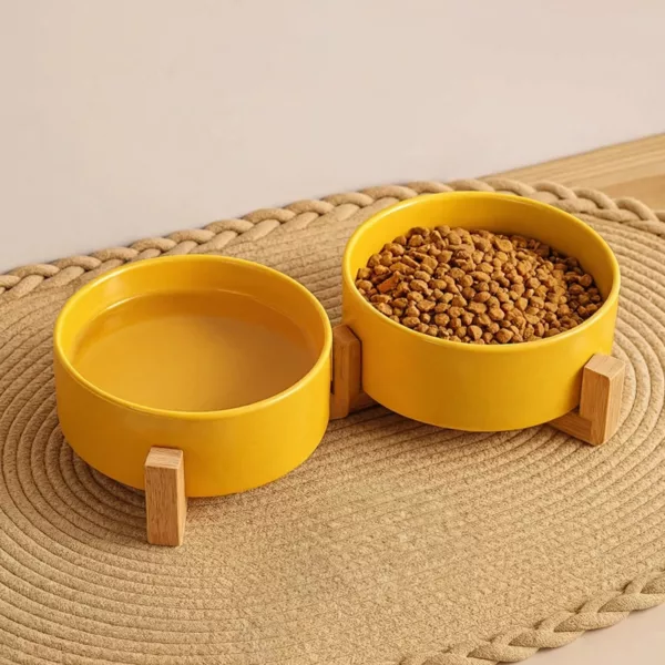 Two-In-One Ceramic Pet Bowl with Wooden Stand